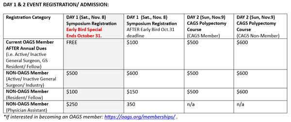 - EARLY BIRD SURGICAL SYMPOSIUM REGISTRATION DEADLINE: Extended to Nov.7